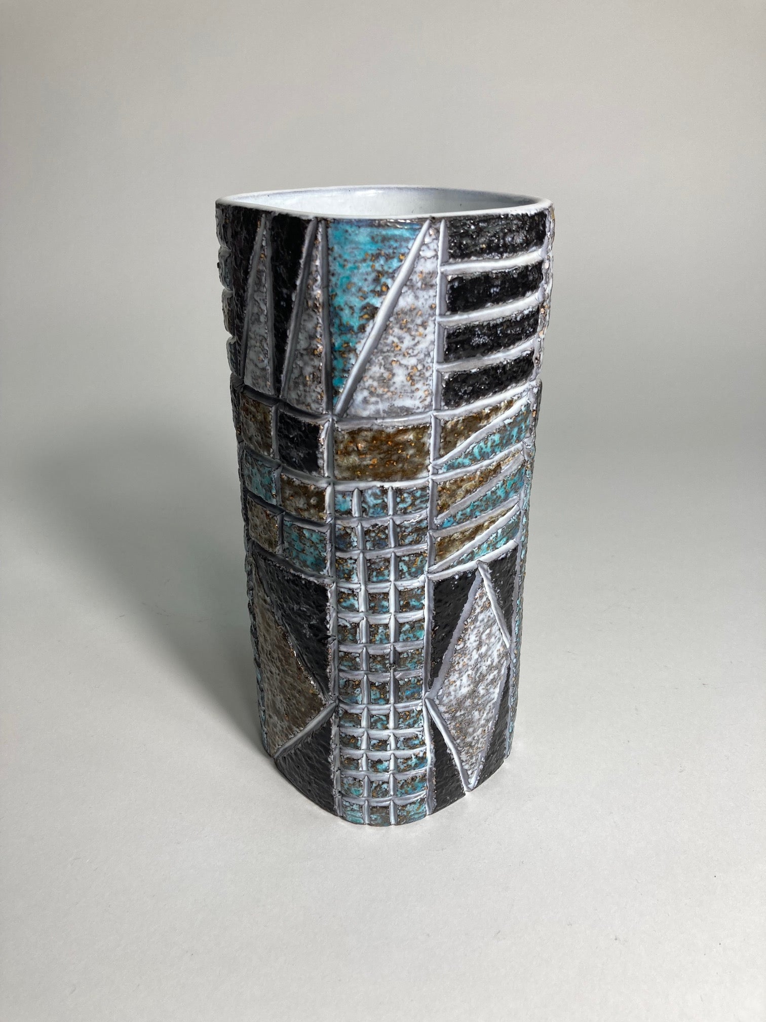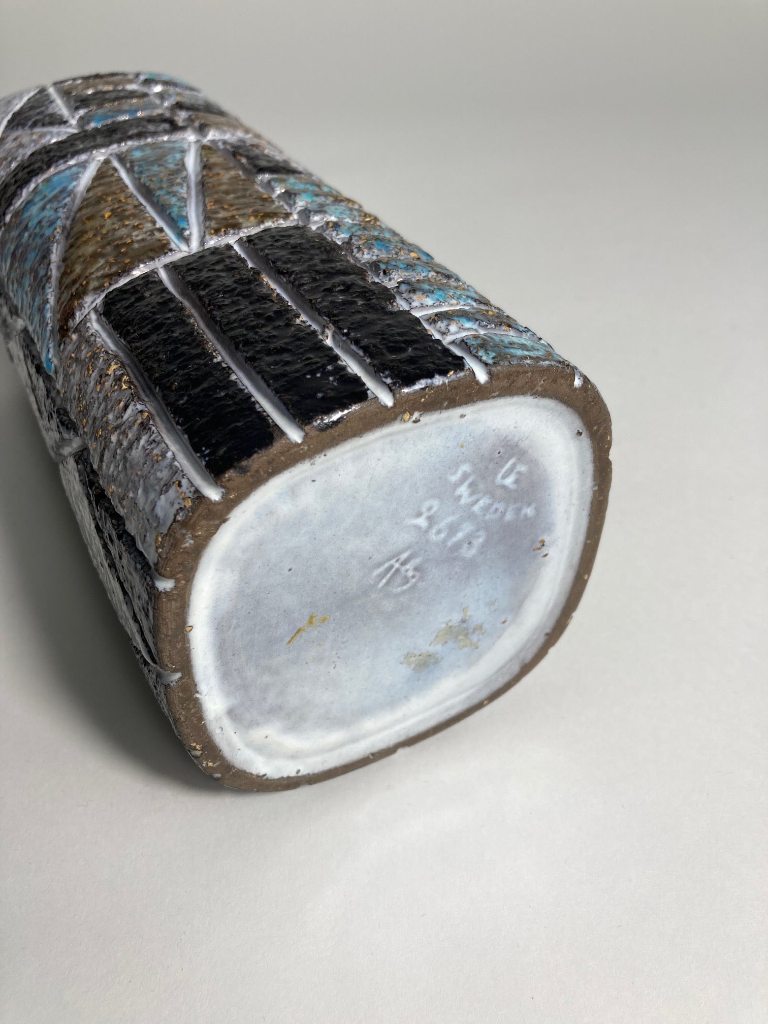 A ceramic vase from the Tri series designed in 1963 by Ingrid Atterberg and made by Swedish Upsala Ekeby. Model number 2673.