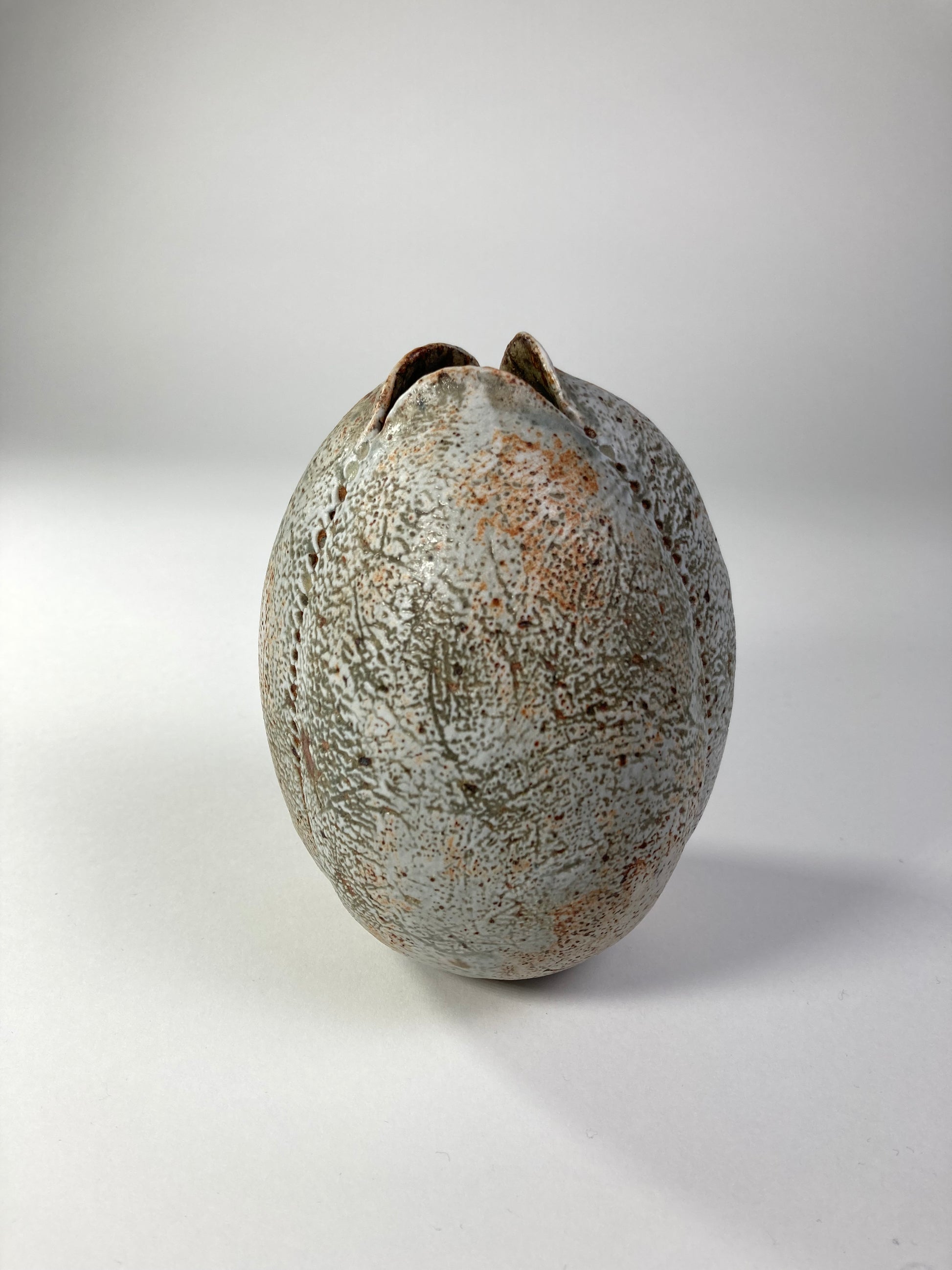 A stoneware seed vessel by the ceramic artist Alan Wallwork (1931 - 2019). Made circa 1980s.