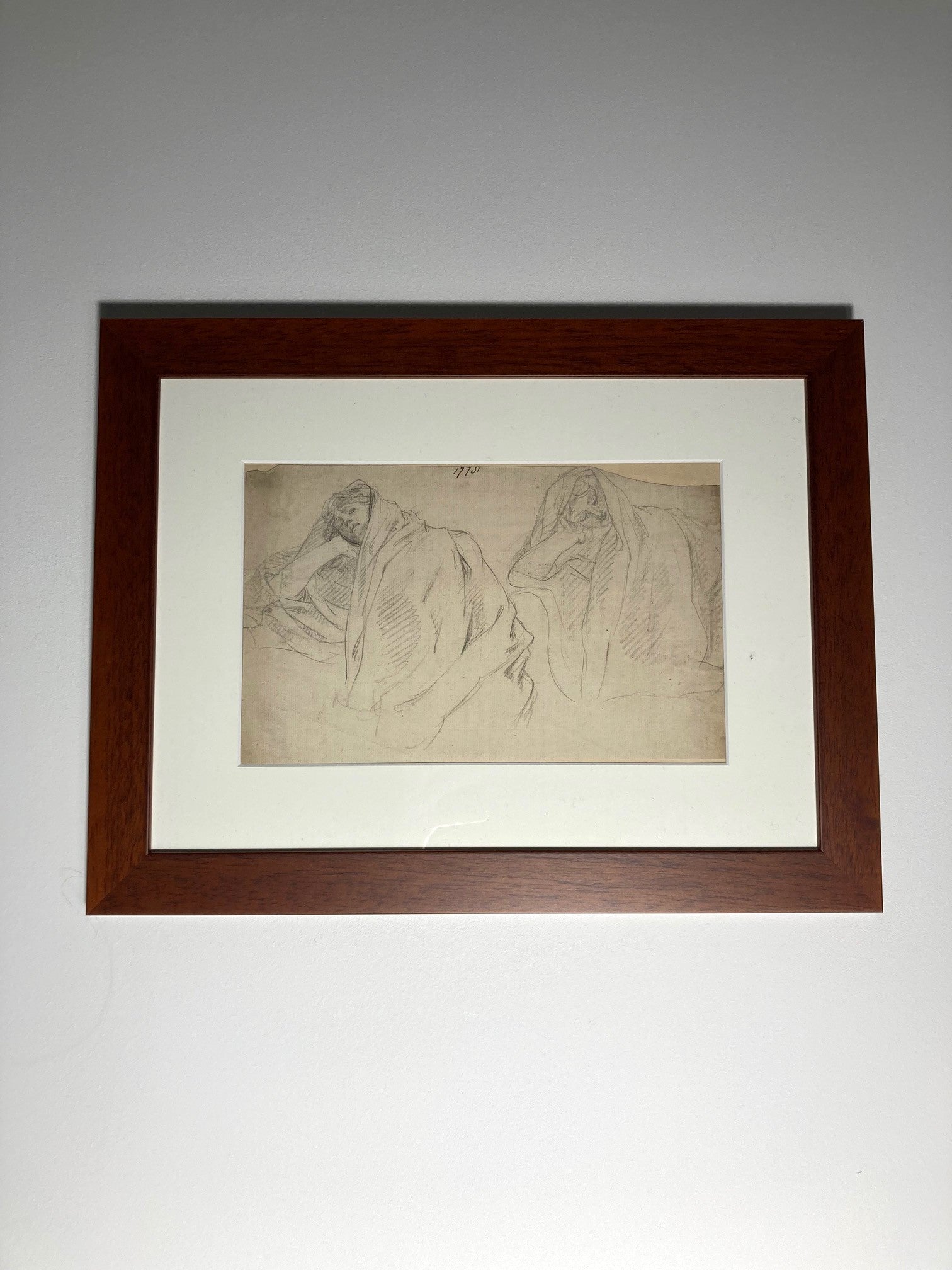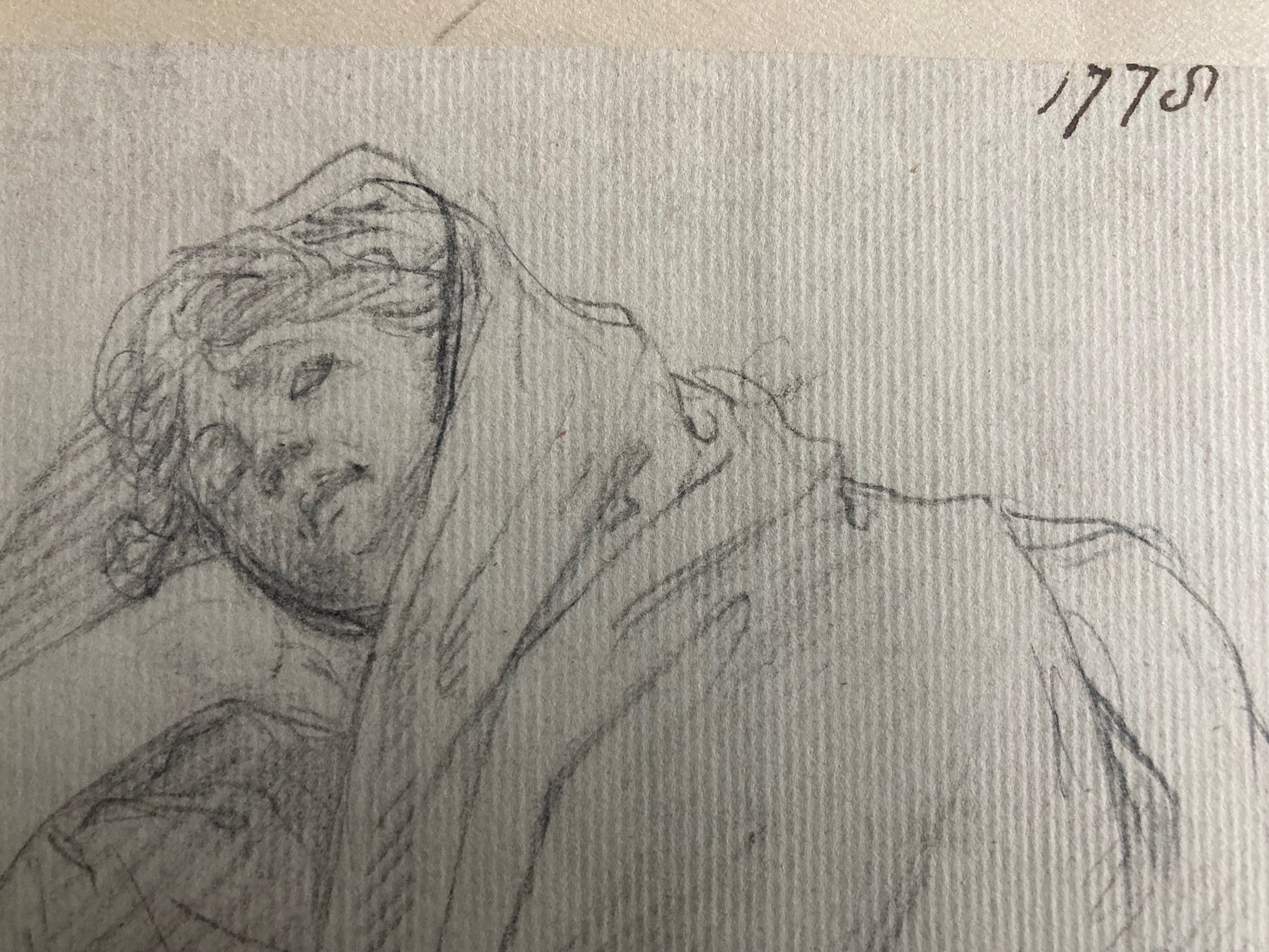 Two pencil studies on paper of a reclining cloaked figure, dated '1778' above
